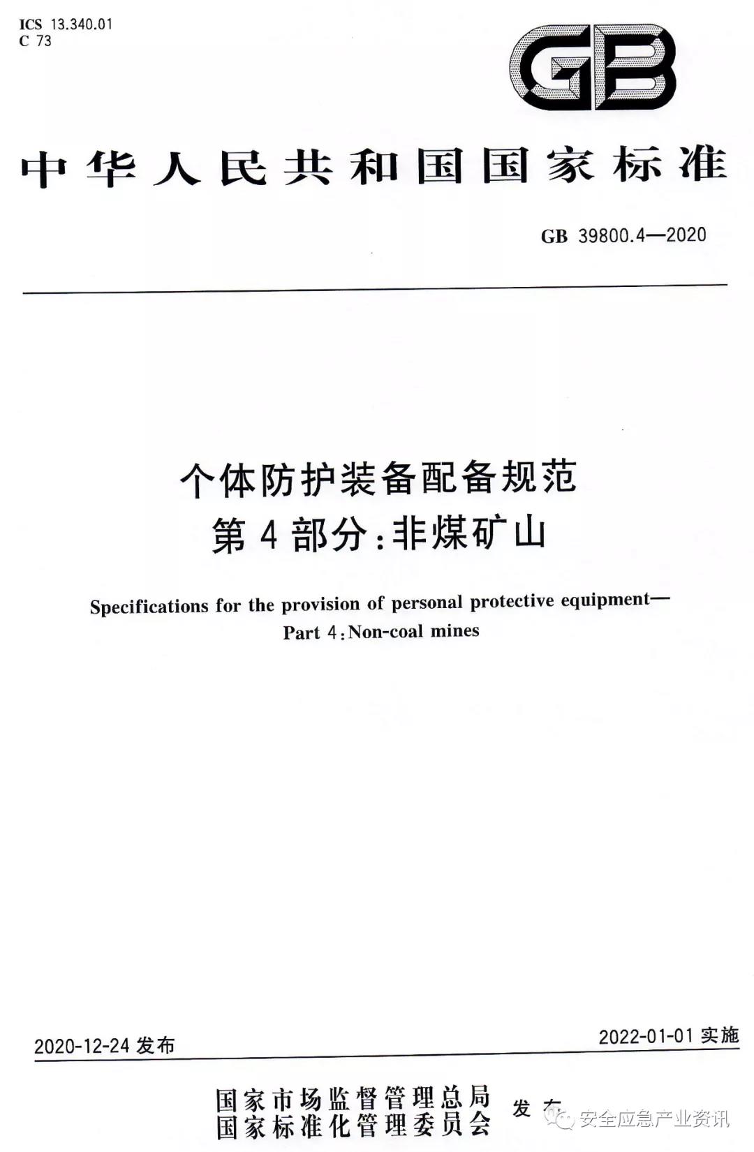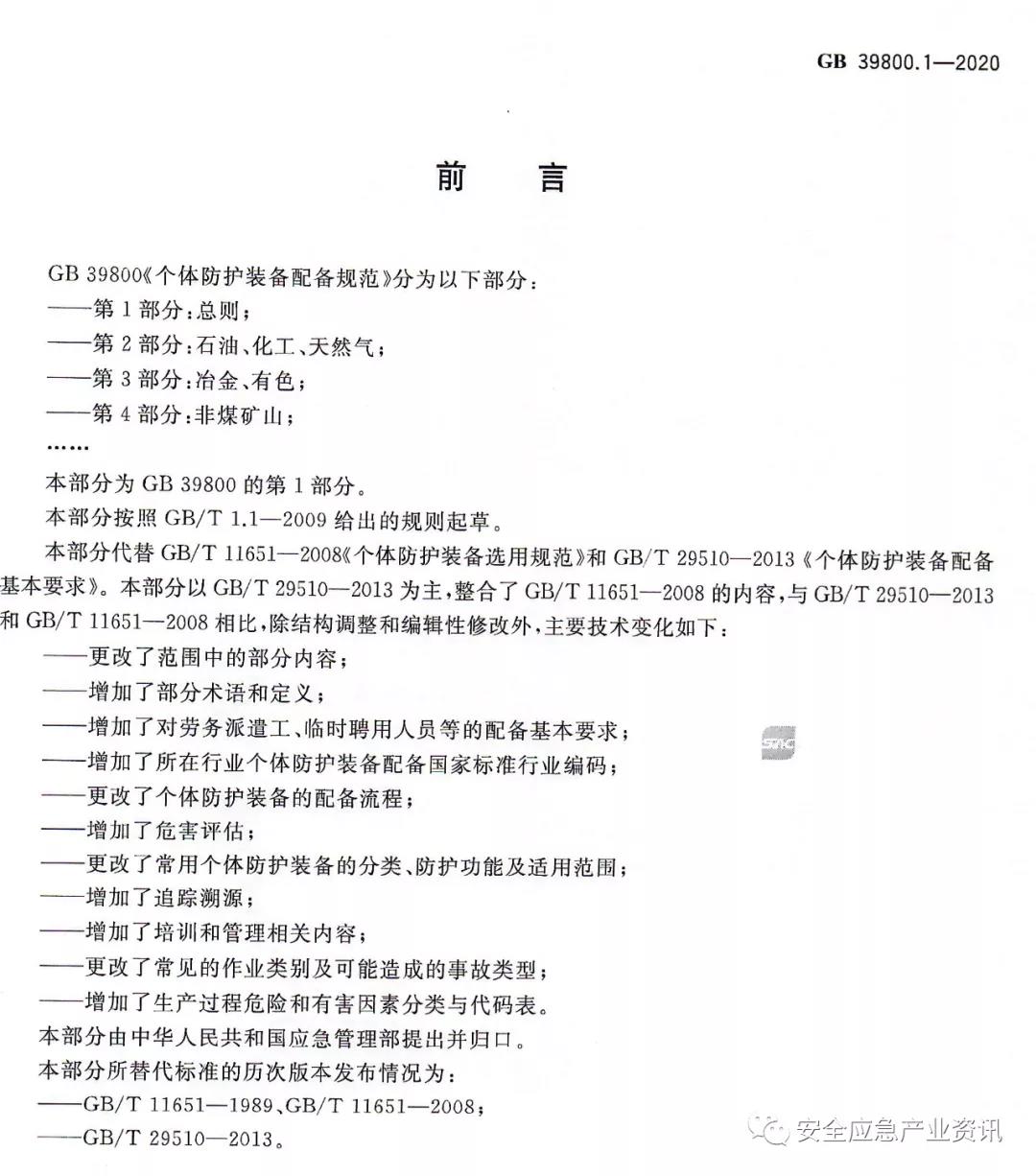 官方消息:GB39800.1-2020《個(gè)體防護(hù)裝備配備規(guī)范第1部分:總則》將代替GB/T11651-2008《個(gè)體防護(hù)裝備選用規(guī)范》、GB/T29510-2013《個(gè)體防護(hù)裝備配備基本要求》,并將于2022年1月1日實(shí)施。GB39800.2-2020《個(gè)體防護(hù)裝備配備規(guī)范第2部分:石油、化工、天然氣》、GB39800.3-2020《個(gè)體防護(hù)裝備配備規(guī)范第3部分:冶金、有色》、GB39800.4-2020《個(gè)體防護(hù)裝備配備規(guī)范第4部分:非煤礦山》也將于2022年1月1日實(shí)施。