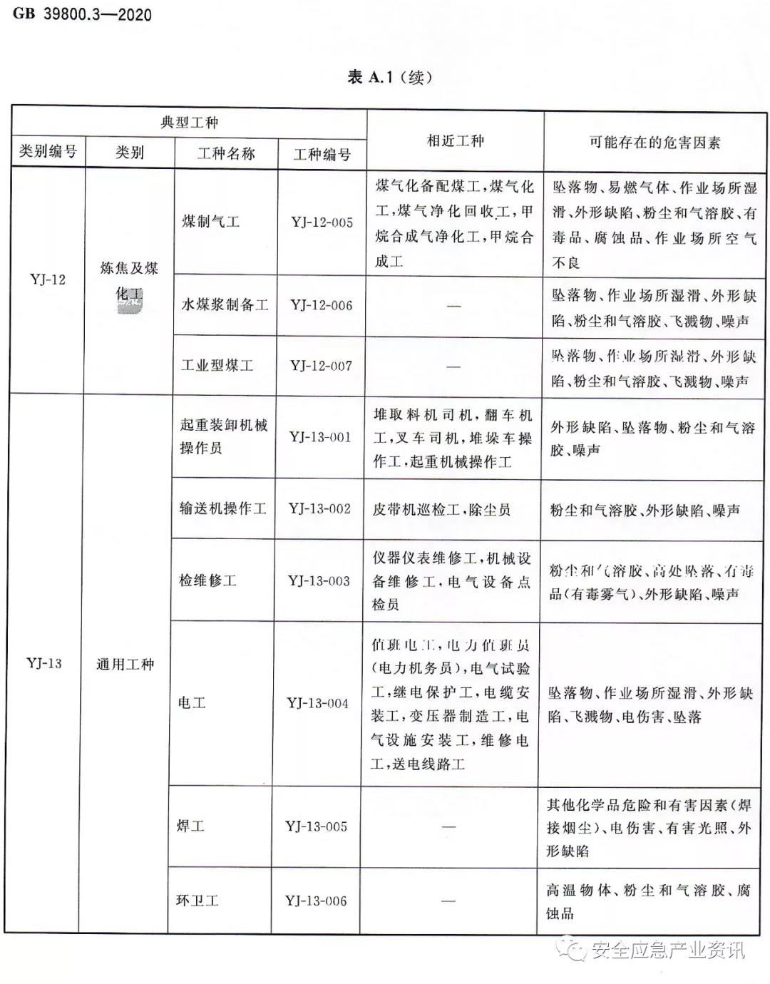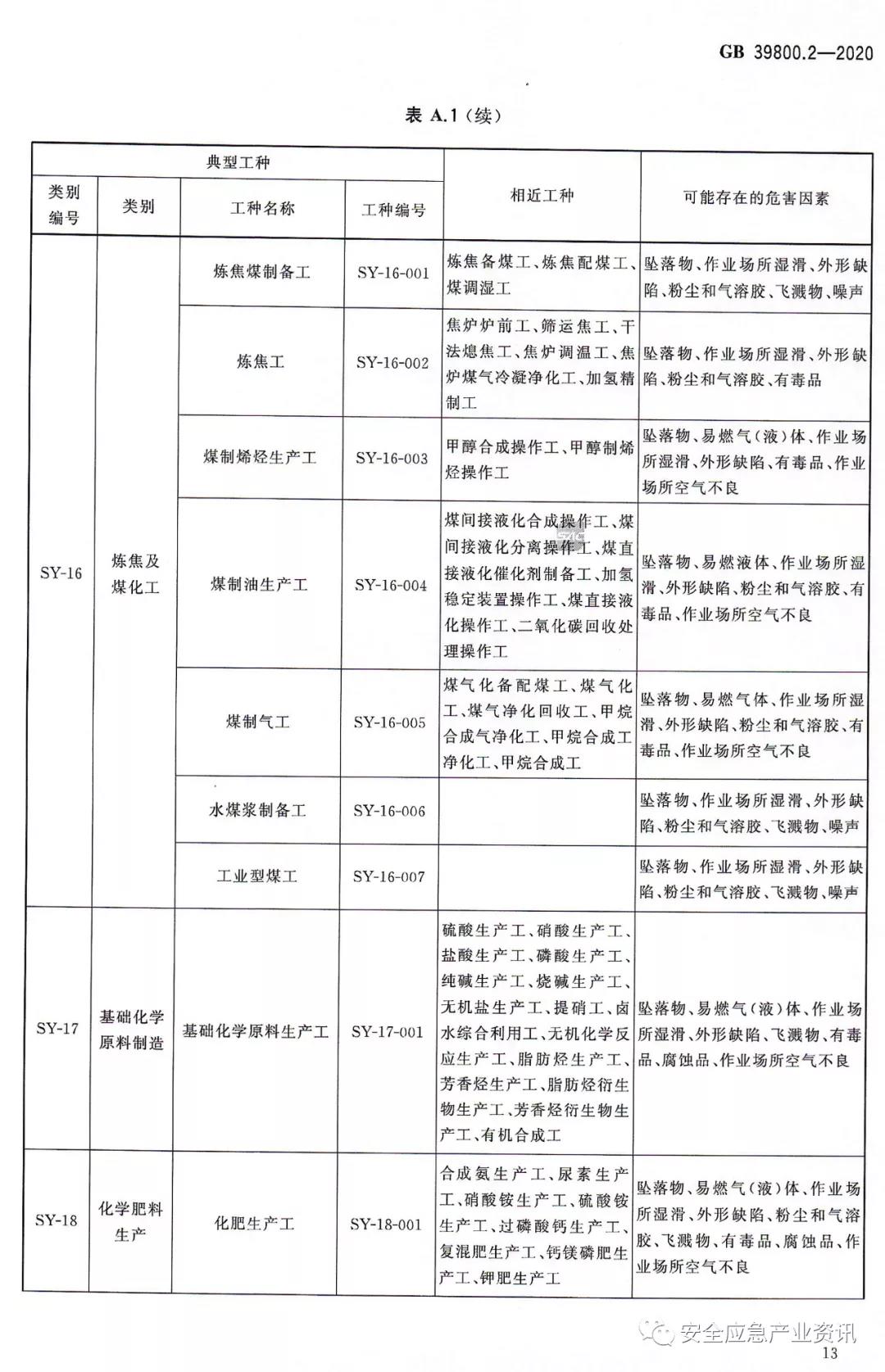 增加了所在行業(yè)個(gè)體防護(hù)裝備配備國(guó)家標(biāo)準(zhǔn)行業(yè)編碼;