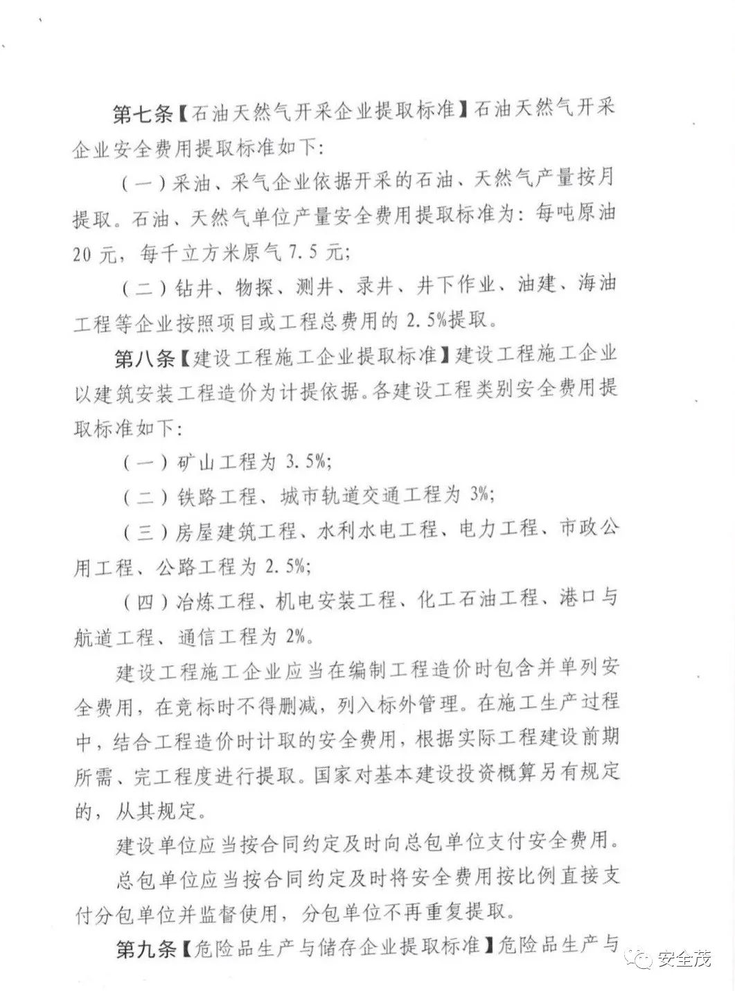 第十六條【特別計提依據(jù)】新建企業(yè)和投產(chǎn)不足一年的企業(yè),以當(dāng)年實際營業(yè)收入為提取依據(jù),按月計提安全費用。