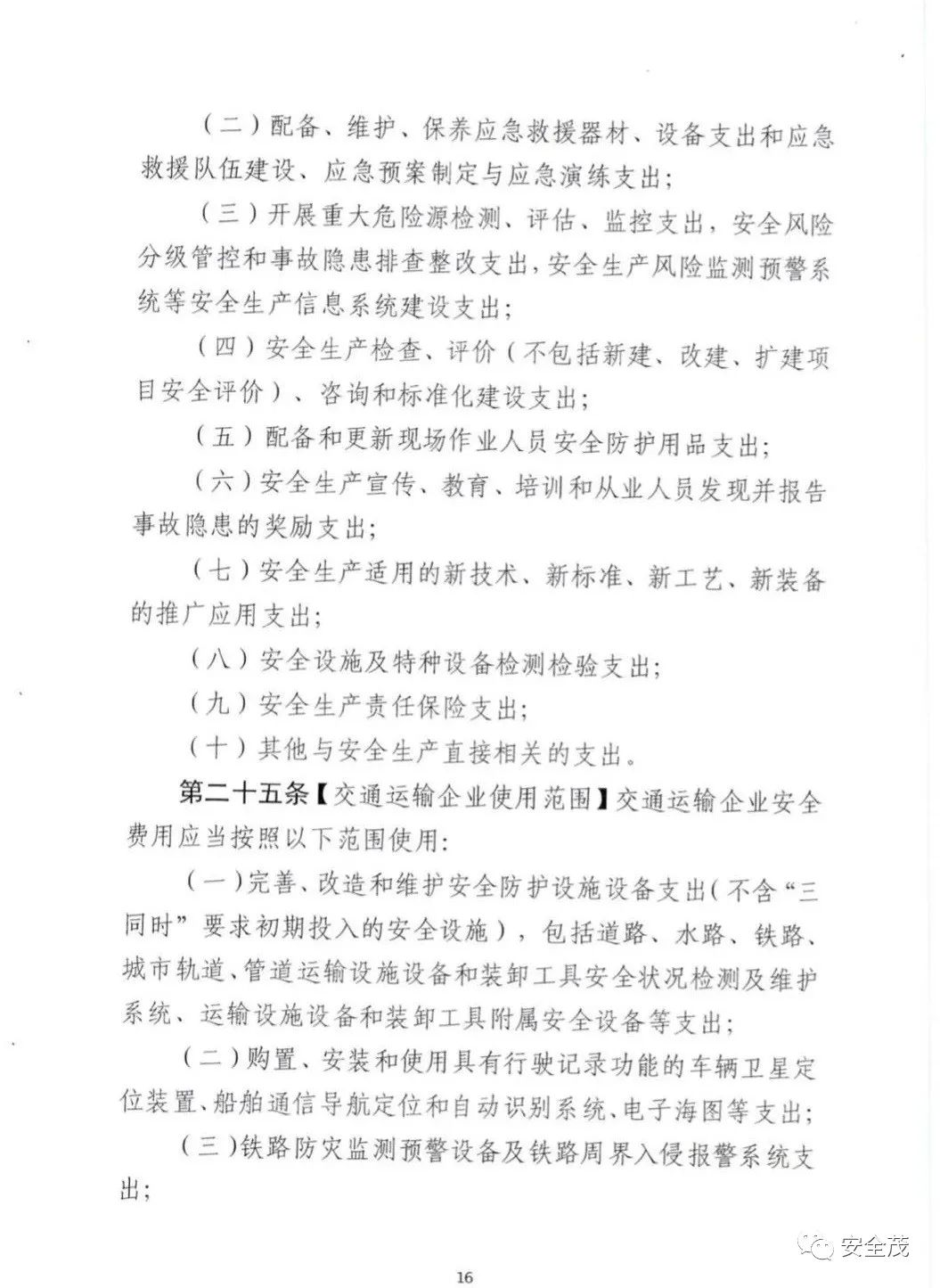 第二十一條【交通運輸企業(yè)使用范圍】交通運輸企業(yè)安全費用應(yīng)當(dāng)按照以下范圍使用: