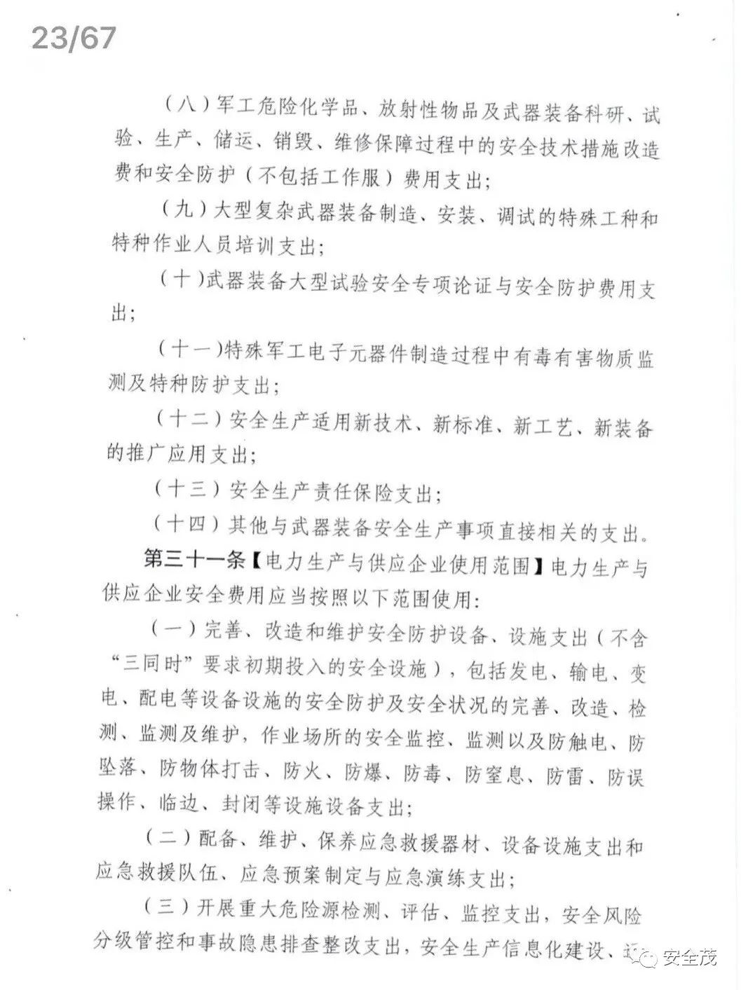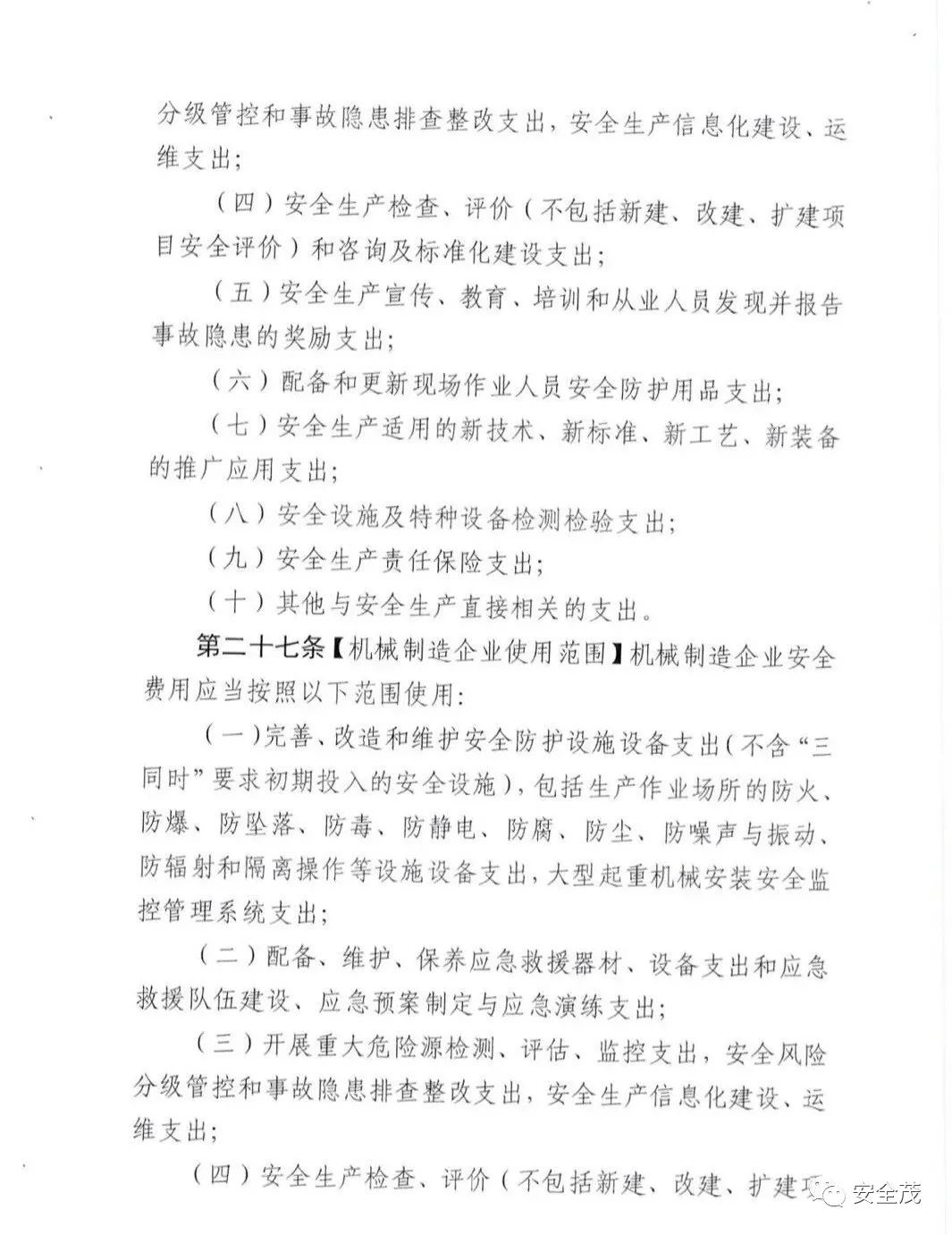 第二十三條【機械制造企業(yè)使用范圍】機械制造企業(yè)安全費用應(yīng)當(dāng)按照以下范圍使用: