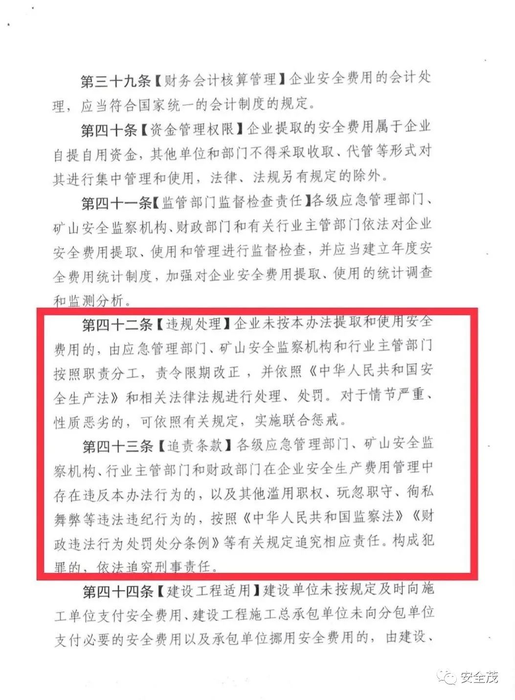 第三十六條【違規(guī)處理】企業(yè)未按本辦法提取和使用安全費用的,應(yīng)急管理部門、煤礦安全監(jiān)察機構(gòu)和行業(yè)主管部門責(zé)令其限期改正,并依照《中華人民共和國會計法》《中華人民共和國安全生產(chǎn)法》的有關(guān)規(guī)定處理、處罰。