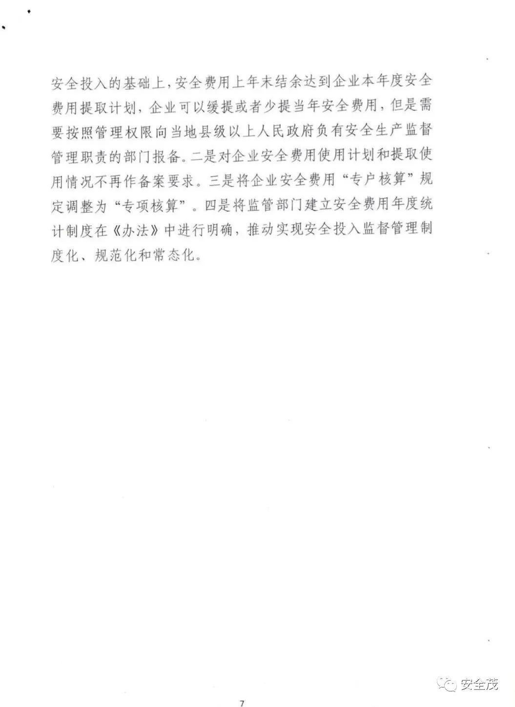 第二十七條【安全費用財務(wù)管理規(guī)定】企業(yè)提取的安全費用應(yīng)當(dāng)專項核算,按規(guī)定范圍安排使用,不得擠占、挪用。年度結(jié)余資金結(jié)轉(zhuǎn)下年度使用,當(dāng)年計提安全費用不足的,超出部分按正常成本費用渠道列支。
